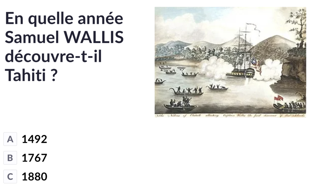 Chaque élève indique selon la rotation de sa carte, sa réponse : A, B, C, ou D.